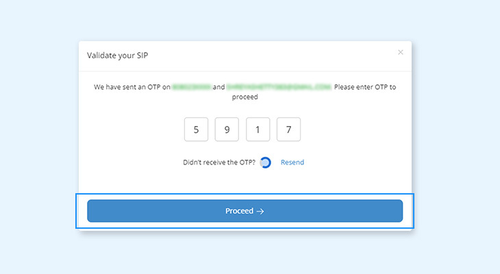 Step 6: Validate your SIP transaction with an OTP confirmation and then click on the Proceed button.