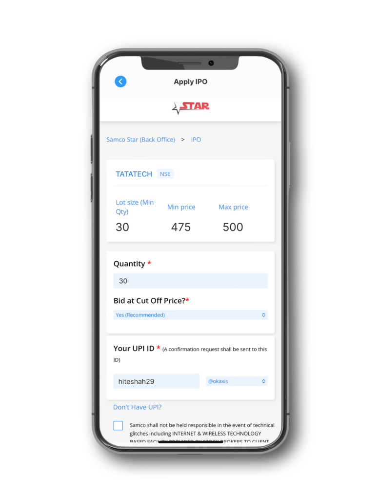 • Agree to Terms & Conditions: Review and agree to the terms and conditions for IPO application.