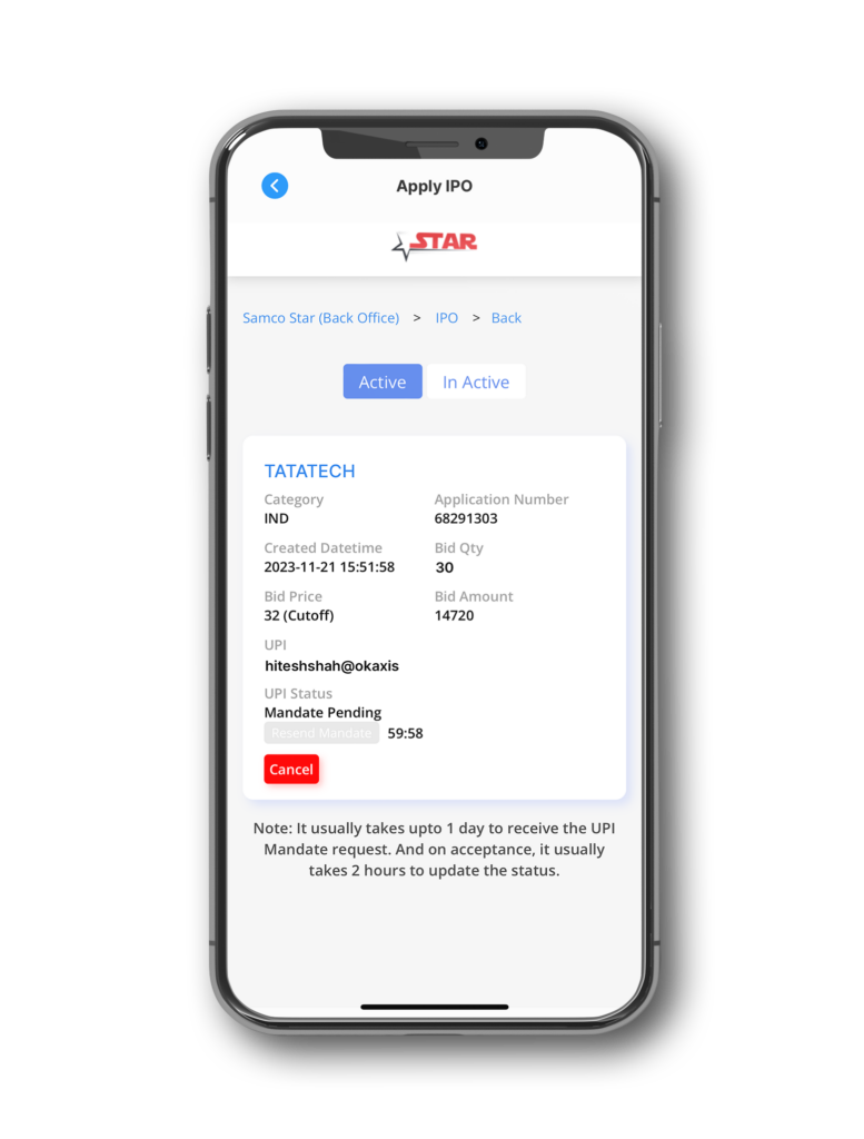 • Approve the Mandate Details: If prompted, approve the mandate details for the IPO application.