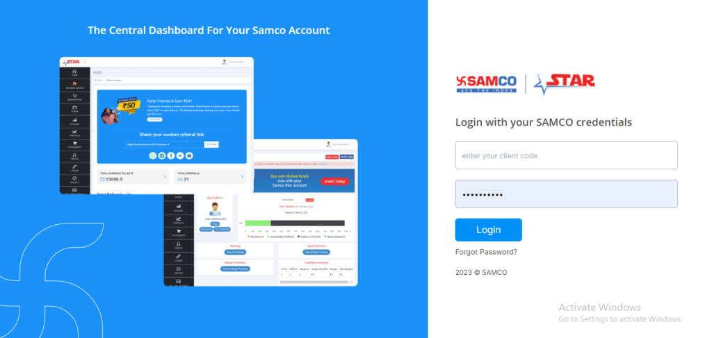 Visit https://star.samco.in to view or download the ITR statements from the Samco Star Back office. Once you go on the link, enter your credentials (User Id – Client Code & Password – Could probably be your Pan Card Number)