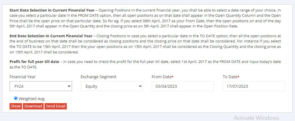 Step 2: Once you’ve logged in, choose the report you want to view, download, or even email to yourself. Reports generally required for ITR are Profit and loss statements, Holding statements, Trade book summaries, and ledger statements.
