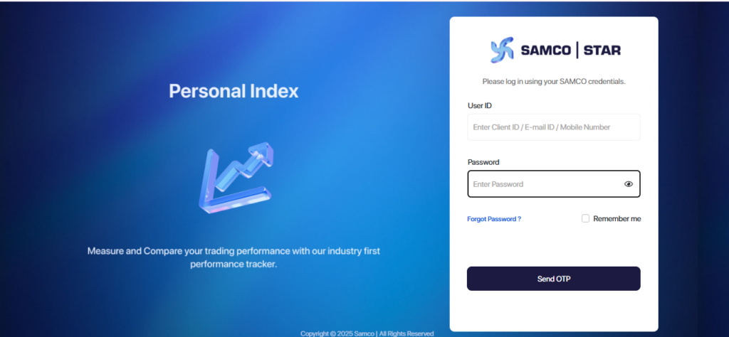 Note: The credentials for the Samco Star Back Office and the Samco Mobile App are different.For Star Back Office, the password can either be your PAN number or the password you have set specifically for the Back Office.