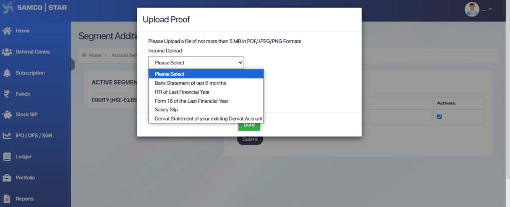 After selecting your desired segment(s) and clicking Submit, the system will verify your eligibility based on your Samco account holdings.
