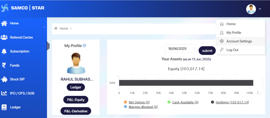 Note: The credentials for the Samco Star Back Office and the Samco Mobile App are different.For Star Back Office, the password can either be your PAN number or the password you have set specifically for the Back Office.