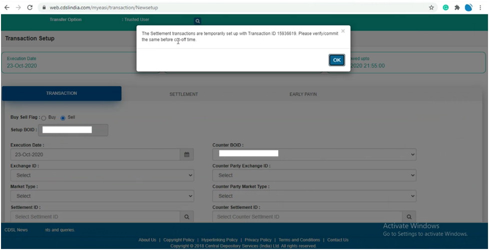 3. You need to select ‘Transaction’ and enter the execution date and enter the Beneficiary owner ID(BOID), you need to transfer the shares.