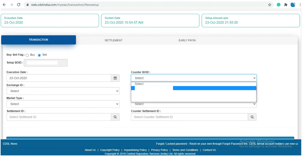 3. You need to select ‘Transaction’ and enter the execution date and enter the Beneficiary owner ID(BOID), you need to transfer the shares.