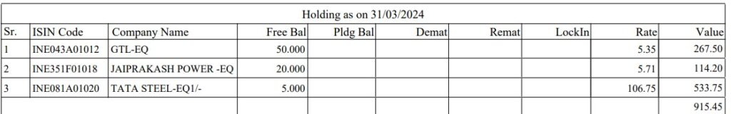 Free Bal: Is the quantity of share you have in your holding till the date of the report.